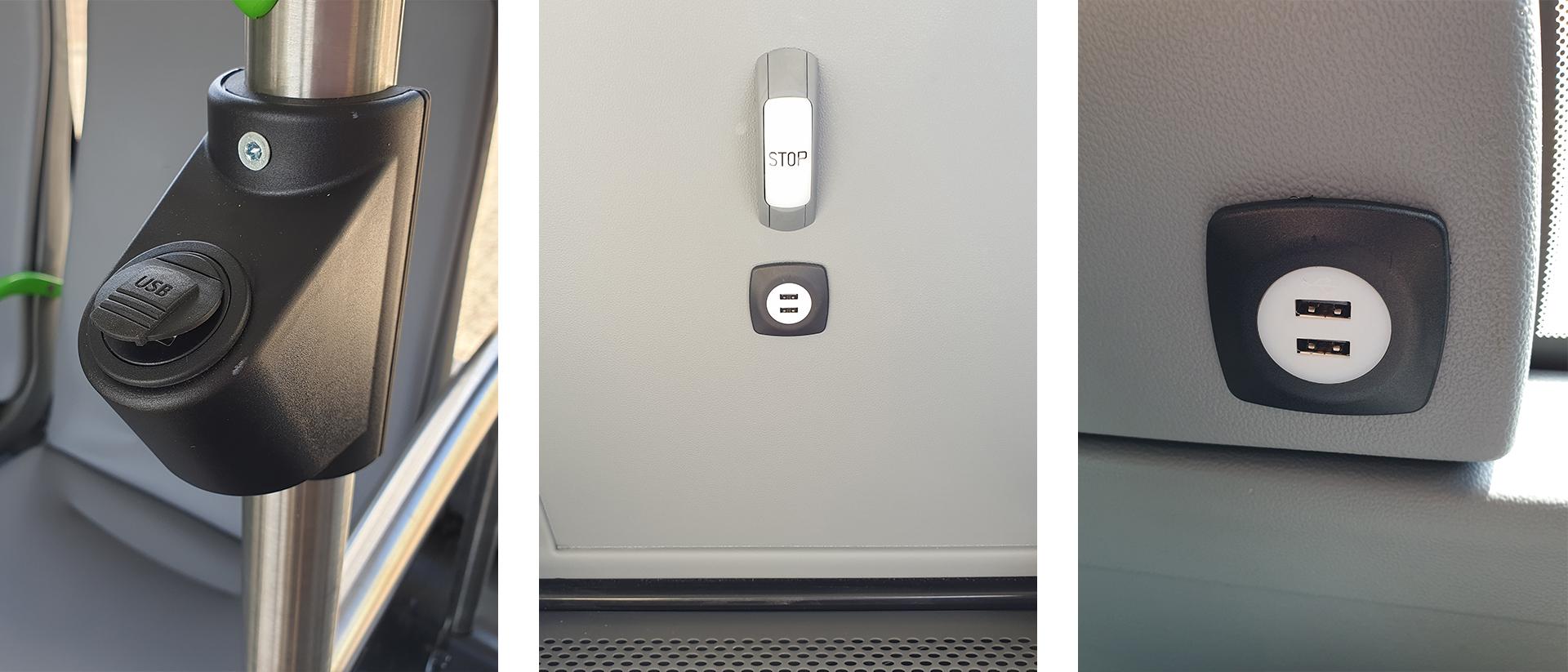 Nie wieder offline: Als perfekte Ergänzung zum gratis WLAN in all unseren Bussen sind viele Sitzplätze mit USB-Steckdosen ausgestattet.