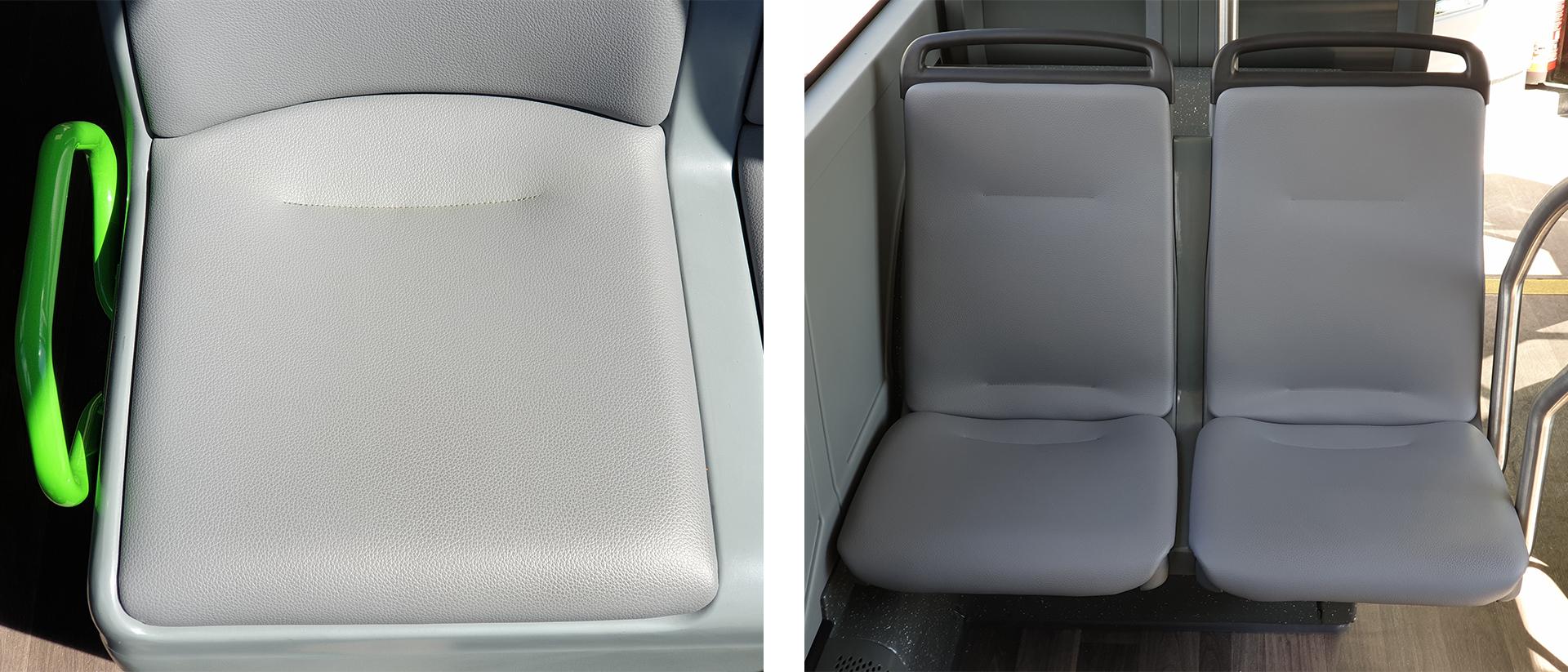 Auch die neuen Sitze versprechen eine bequeme Fahrt: Mit Bezügen in Leder-Optik unterstreichen Sie den modernen Charakter der Ausstattung und erleichtern eine hygienische Reinigung.